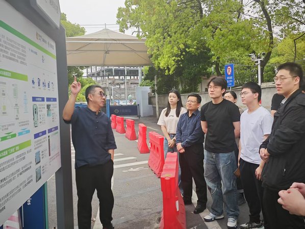 签约仪式后,朱俨带领师生参观和了解【i玖充电】宝安公路车网互动示范站各种业态模式运营。朱俨向同学们介绍了V2G技术核心,讲解演示电动汽车与电网双向充放电智能终端,通过低谷储能/高峰供电实现资源节约、增强经济效益。同学们对于汽车充换电的方式,目前国内积极推进的“新能源汽车充放电的虚拟电网容量设备”以及新能源汽车行业电池技术、充换电设备研发有了更多了解。