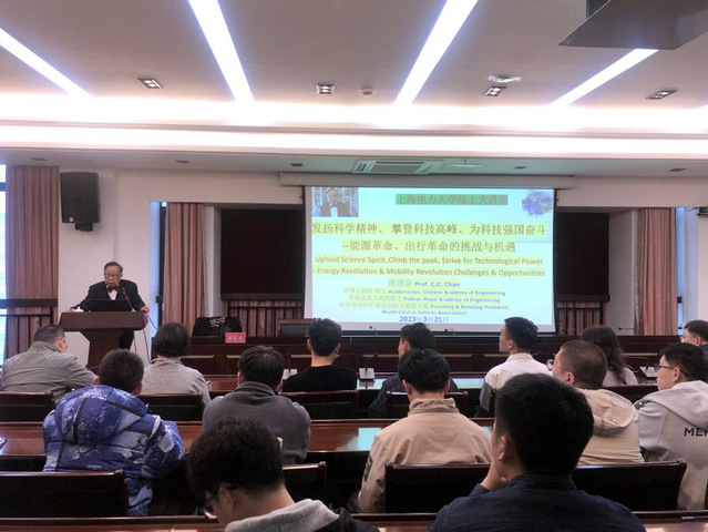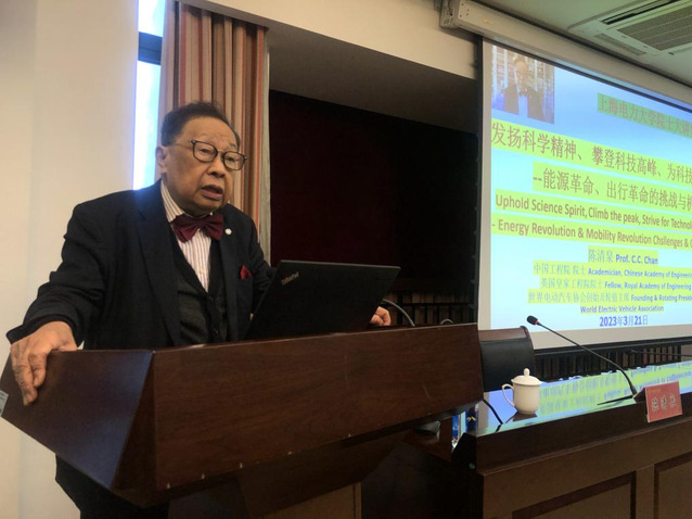 3月21日上午,我校“院士大讲堂”在杨浦校区行政中心举行,中国工程院院士、英国皇家工程院院士、世界电动汽车协会创始及轮值主席陈清泉先生,应邀为金沙师生带来一场题为《发扬科学精神,攀登科技高峰,为科技强国奋斗——能源革命、出行革命的挑战与机遇》的精彩讲座。