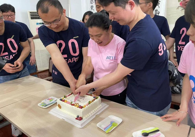丛亮致欢迎辞,她首先感谢校友们长期以来对母校的关心和支持,随后简要介绍了学校近年来的发展与变化,并祝全体校友生活愉快,工作顺利。王忠华代表金沙欢迎校友回家,介绍了学院近年的发展情况,并向校友赠送了纪念校徽和学院宣传册。校友们追忆往昔时光,共叙校园情谊,畅聊近年来的经历、变化,共同回顾校园趣事,交流人生感悟。校友办为返校班级精心准备了毕业20周年的蛋糕,在场校友老师共同分切蛋糕庆祝相聚。