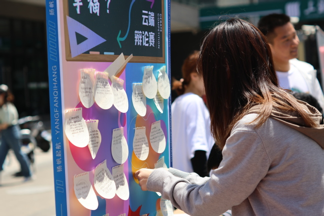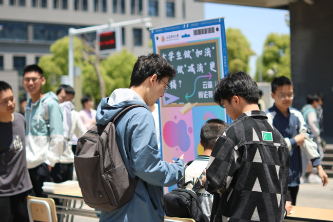 支持做“减法”观点的一方,认为幸福感至上,应该适当减轻压力、减少不必要的琐事,享受“精简生活”,从而收获满足感和幸福感;支持做“加法”观点的一方,认为大学生应该尽可能增长见识和履历,提升自身能力全面发展,以适应激烈的社会竞争。最后,工作人员将两方的观点进行了集中展示,进一步引发了同学们对当下大学生学习生活状态的认知与反思,找到“加法”与“减法”的平衡点,追寻自己的学习成长之路!