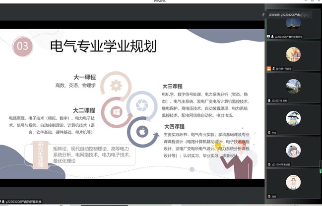 会上,研究生党员们根据自身学习经历向本科生传授经验:四六级方面,宋妍霖同学从听力、阅读、选词填空和匹配题、翻译与写作四大板块逐一解析了四六级考试要点,帮助同学们最快了解四六级考试技巧,强调“四六级考试要抓住每一次考试机会,千万不可以拖延”;学习规划方面,申杰同学从电气专业的特色出发,详细阐述了如何开展专业学习规划;考研经验方面,林禹贤同学从政治、英语、数学、电路、择校五个方面进行了详细讲解;另外还有徐文韬、胡徐曾、周钰、严鑫等党员同学分享了自己的经验和看法。研究生同学分享结束后,参加活动的本科生同学踊跃提问,活动气氛热烈。