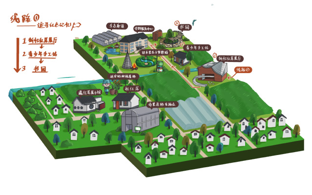 文旅融合绘创新,青衿音韵展心声。为实现特色文化和数字技术赋能乡村旅游业,实践队员们开发了专属于上海沈陆村的网站和移动端APP,并创建了沉浸式3D全景地图,旨在为村民和游客提供更加便捷、丰富的信息服务。此外,实践队员们特别手绘了两条引人入胜的微旅游线路——“红色记忆”和“绿色童趣”线路。队员们创造性地打造了“一个线上文旅交互平台+一系列旅游线路+一套文智双推方案+一首乡村振兴歌曲MV”的“4+X”沉浸式旅游模式,用青春之行助力“三农”新图景。