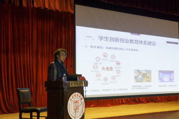 刘紫薇全面分析了挑战杯系列赛事过去五年的获奖项目,从比赛形式到作品方向,为与会同学们全面解读了“挑战杯”比赛的重点内容。刘建锋介绍了大型科创赛事的基本流程、各类赛事规则,科创项目的实用价值和对专业学习的意义,结合历年参赛项目分享了“挑战杯”比赛的重点内容。