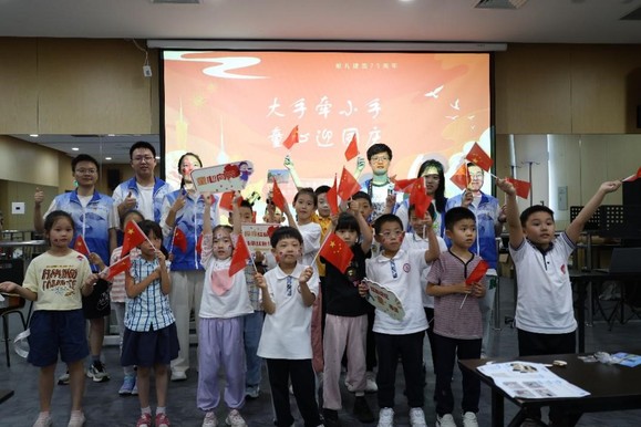 2024年是中华人民共和国成立75周年,为进一步培育与提升青少年的家国情怀,激发青少年对国家和中华民族的情感认同与责任担当,9月27日,金沙js9线路中心本科生第四党支部与202202J2团支部成员来到五角场街道创智坊社区睦邻中心,开展了以“电力满满迎国庆”为主题的爱国主义教育活动。