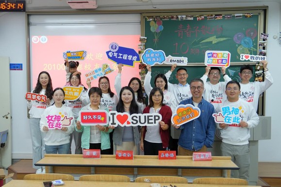 10月19日,金沙js9线路中心2010029班校友们带着青春的回忆重返母校,在杨浦校区一号教学楼103教室开展毕业十周年活动。学院教师杨欢红、周波、王忠华、吴晗璐老师参与座谈。