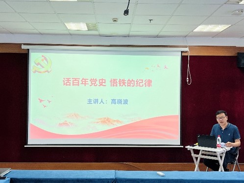 高晓波以《话百年党史 悟铁的纪律》为题开展讲座,围绕《中国共产党章程》修订看党的纪律,详细介绍了党章修订的重大意义和重要内容;针对“从党史上六次重大违纪事件看党的纪律教育”“党史上四个重要的纪律条例解读”两大方面,以案说纪,充分发挥《中国共产党纪律处分条例》在纪律建设中标本兼治的利器作用,使党员干部懂法纪、明规矩、知敬畏、存戒惧,筑牢不可触碰的底线;强调党员干部要严守六大纪律,以铁的纪律要求自己,以铁的纪律铸就党的灵魂。