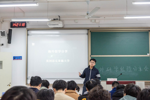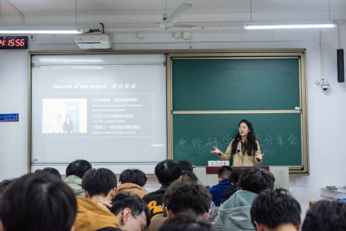 张文文向与会同学介绍了中外合作办学的项目内容,依托学院发布的《2025年英国思克莱德大学2+2、4+1项目报名通知》动员鼓励同学们关注“2+2”和“4+1”培养模式,引导学生关注国际交流学习活动,提升自身竞争力,为未来的留学之路做好了充分的规划与准备。