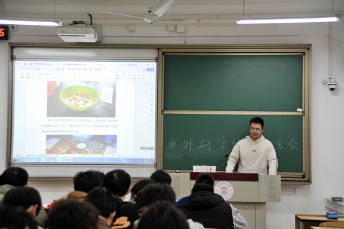 经验交流环节,2023级海外研学学生代表周禹杰、王若菡、吴文彬作分享交流。周禹杰暑期参加了赫特福德游学项目,他从“衣、食、住、行”等方面为同学们介绍了英国的生活方式。王若菡暑期前往瑞士日内瓦联合国,她介绍了联合国的办公环境,分享了参会体验,着重分析了联合国在国际舞台的角色与定位。吴文彬暑期走进思克莱德大学,就思大学习项目、出国学习注意事项、出国的证件准备、出入境要求等方面为同学们进行讲解,并回答了同学们关心的问题。
