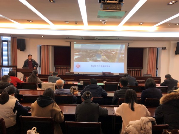 杨兴武副院长介绍了学院近年科研经费情况,详细解读了科研行为负面清单,结合具体案例介绍了高校科研工作违法违规行为。他指出,科研工作是学院发展的重要支撑,全体教职工必须严格遵守学术规范,杜绝学术不端行为;严格遵守科研管理规定,杜绝各类违规违纪行为。用严的规定,铁的纪律,营造风清气正的科研和学术氛围。